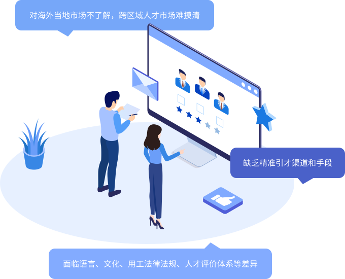 918博天堂官网国际全球化人才配置服务,顺利获得人才地图、招聘落地、人才测评、雇佣管理、海外引才工作站等灵活多样的方式,全面解决中国企业全球化进程中人才配置与管理难题。